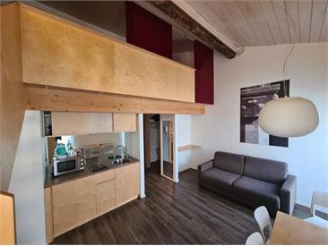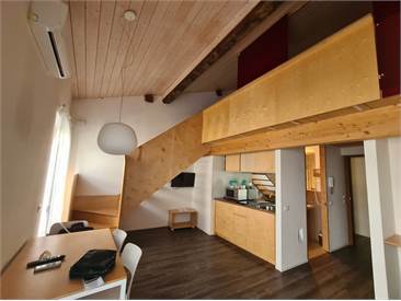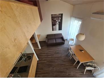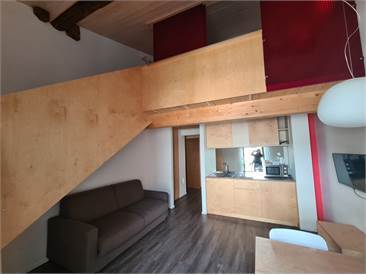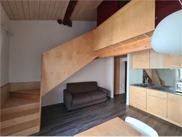 L’immobile, completamente arredato con gusto, è composto da un ampio ingresso, un luminoso soggiorno con angolo cottura, un disimpegno e un elegante bagno. Dallo spazioso soggiorno, una scala conduce alla suggestiva zona soppalcata, che ospita una romantica camera matrimoniale.