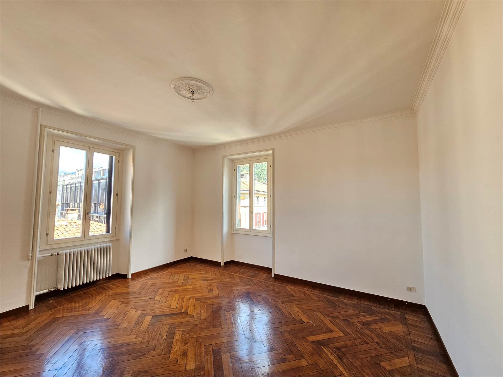 Signorile appartamento completamente ristrutturato a nuovo e parzialmente arredato (SOLO ANGOLO COTTURA), di circa 130 mq. sito al 3° piano con ascensore di una casa d’epoca sita nella zona pedonale del centro storico, a pochi passi dal Duomo e dal Lago.