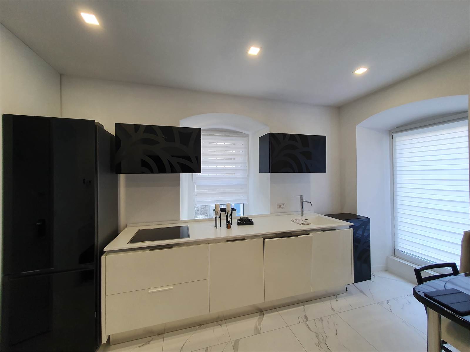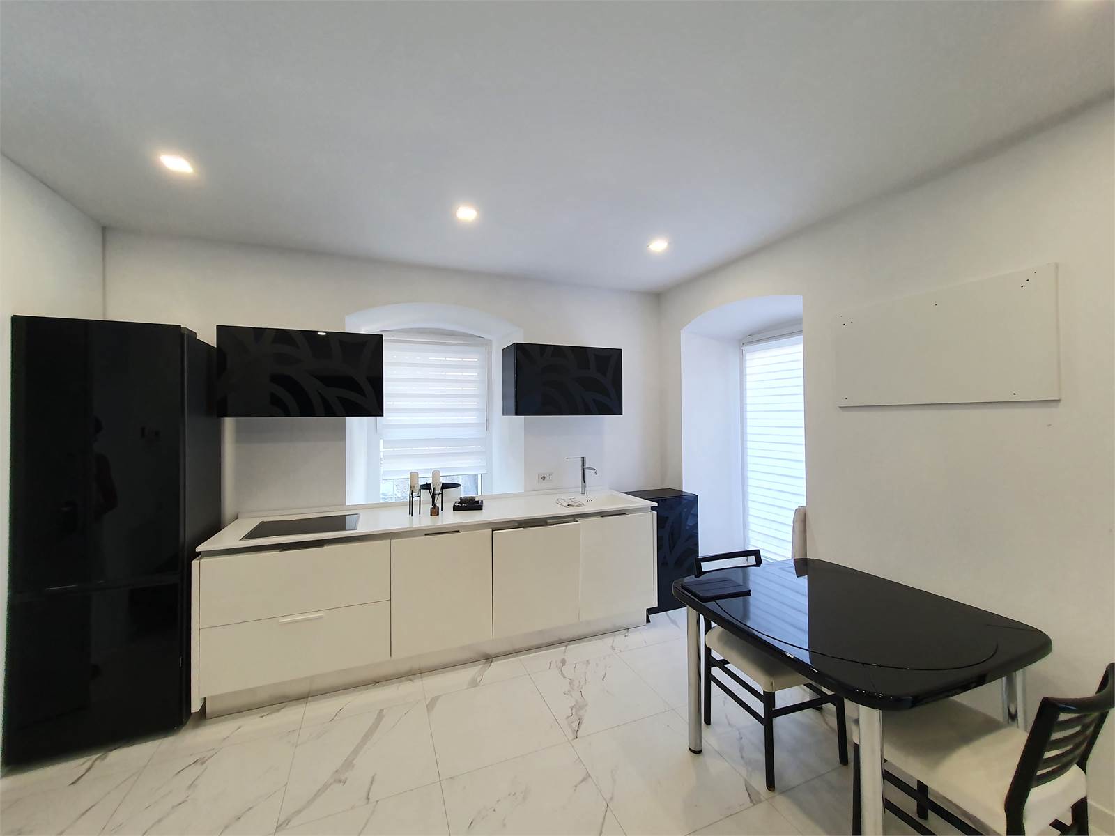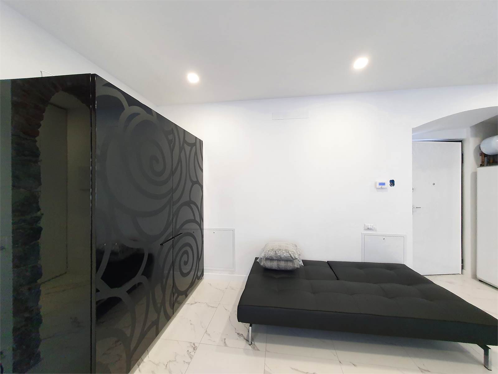 L’abitazione si apre su un ingresso accogliente e prosegue con un elegante salone dotato di angolo cottura e divano letto, oltre a un bagno moderno e funzionale. Gli ambienti sono stati curati con grande attenzione ai dettagli, creando un’atmosfera raffinata e contemporanea.