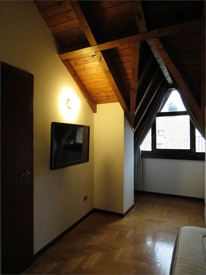 II Livello mansardato abitabile con travi a vista dotato di finestre e lucernari: disimpegno, camera matrimoniale, camera/studio, bagno con vasca/doccia e due ampi ripostigli.