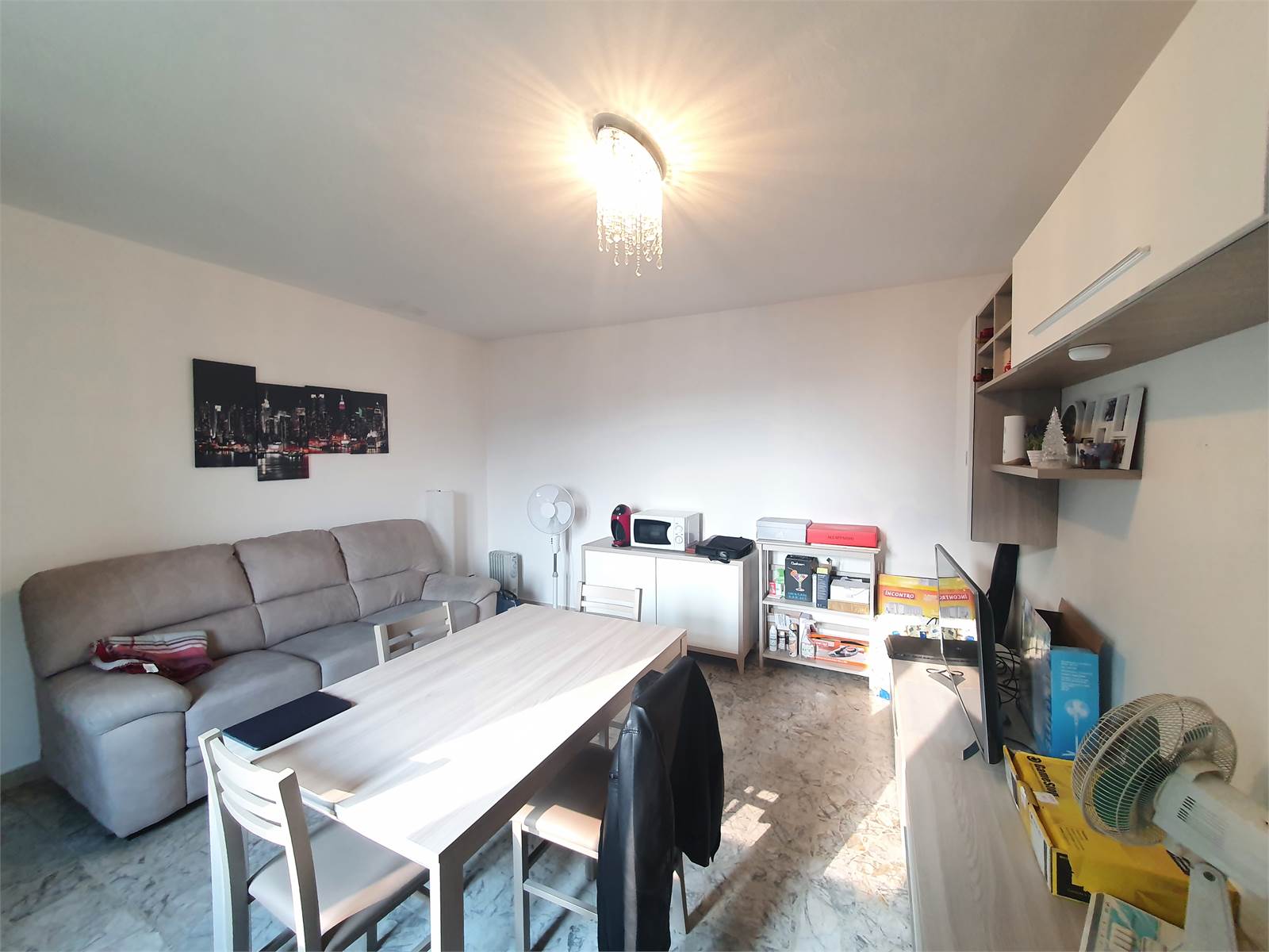 L'immobile è composto da: ingresso direttamente nel soggiorno, cucina abitabile con balcone, camera da letto matrimoniale e bagno.