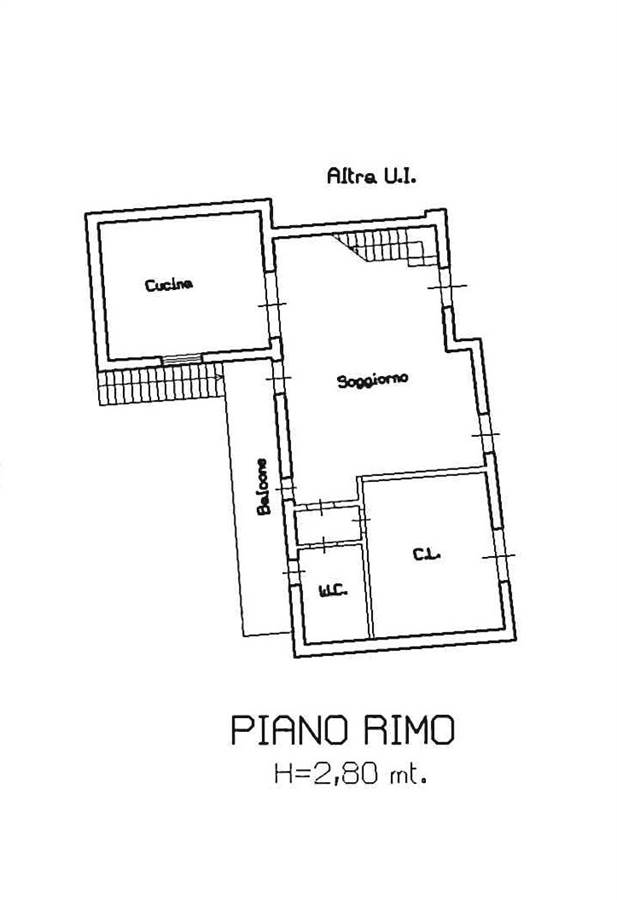 Piano primo di circa 80 mq. con altezza di 2,80m. composto da: ingresso indipendente con scala, balconata, soggiorno con cucina a vista, disimpegno, bagno, camera matrimoniale;