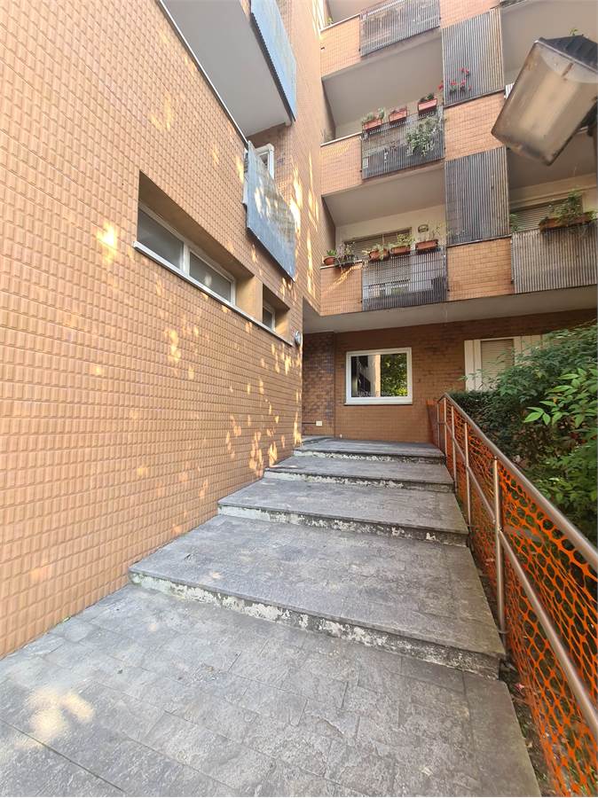 L'immobile in oggetto si configura all'interno di uno stabile degli anni 75 sito in Como via Roosevelt nelle vicinanze della questura, al secondo piano di un condominio con ascensore.