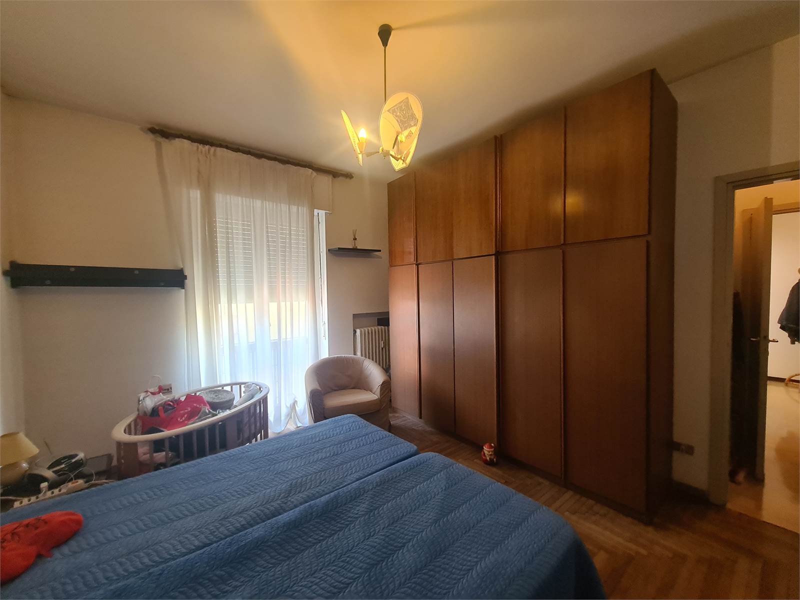 L'appartamento è composto da un ampio ingresso, un luminoso soggiorno con accesso ad un balcone, cucina abitabile con balcone e una zona notte con ampio disimpegno, una camera matrimoniale e bagno, per un totale di circa mq 65.