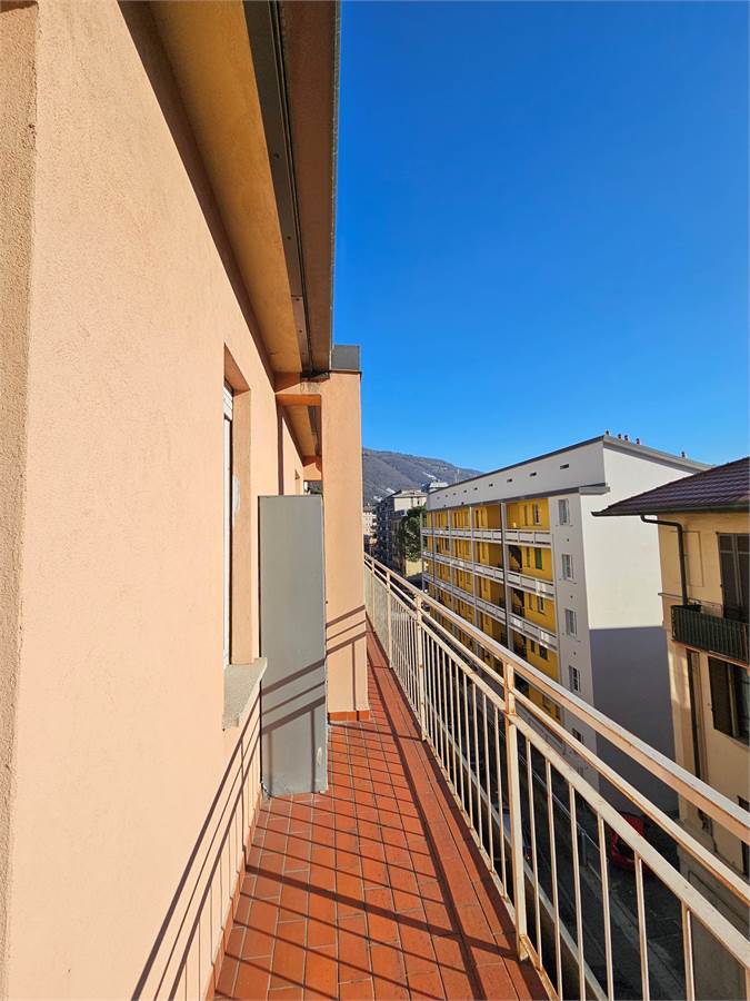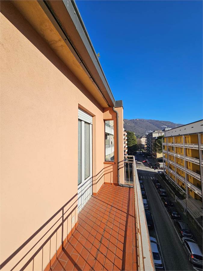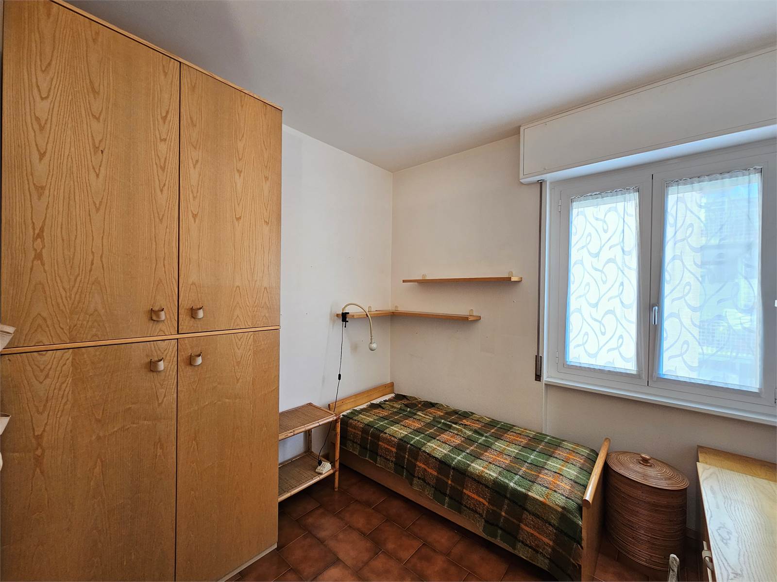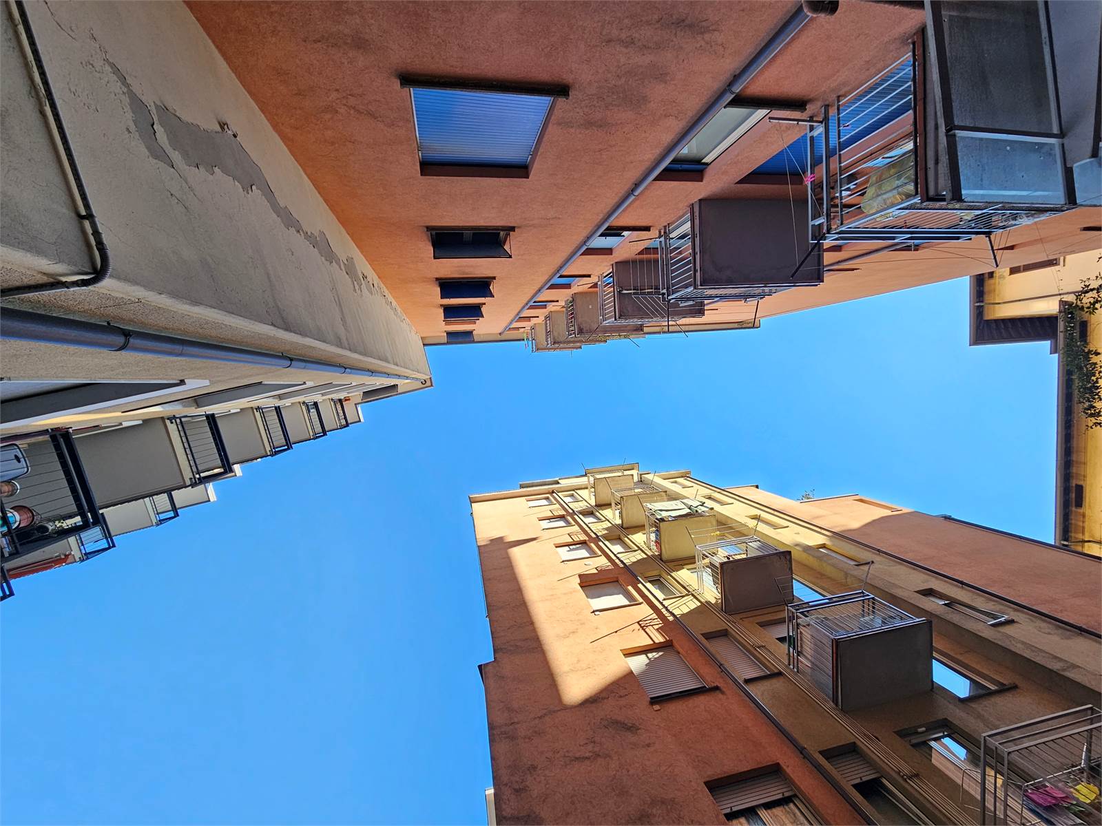 L’appartamento è composto da: ingresso con portoncino blindato, soggiorno luminosissimo con accesso ad un grande balcone, cucinotto, camera matrimoniale con balcone, cameretta, bagno con grande doccia.